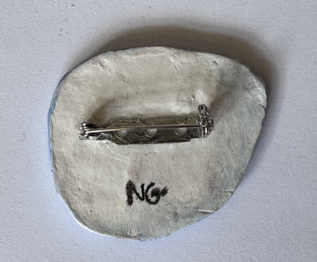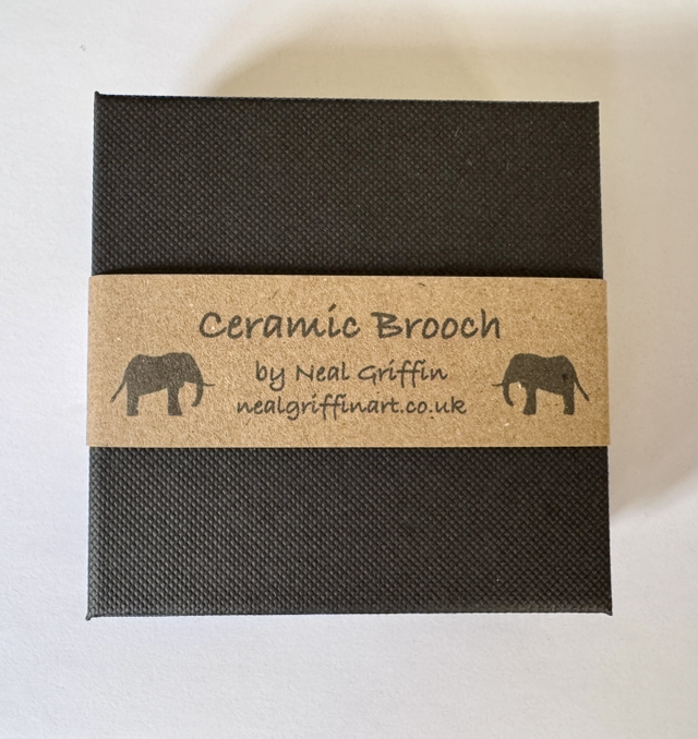 This ceramic wren brooch is made from earthenware clay which has been stamped with a wren design and painted using underglazes. It has a brooch bar finding which has a locking catch. It comes in a gift box and measures approx 2”x 2”
